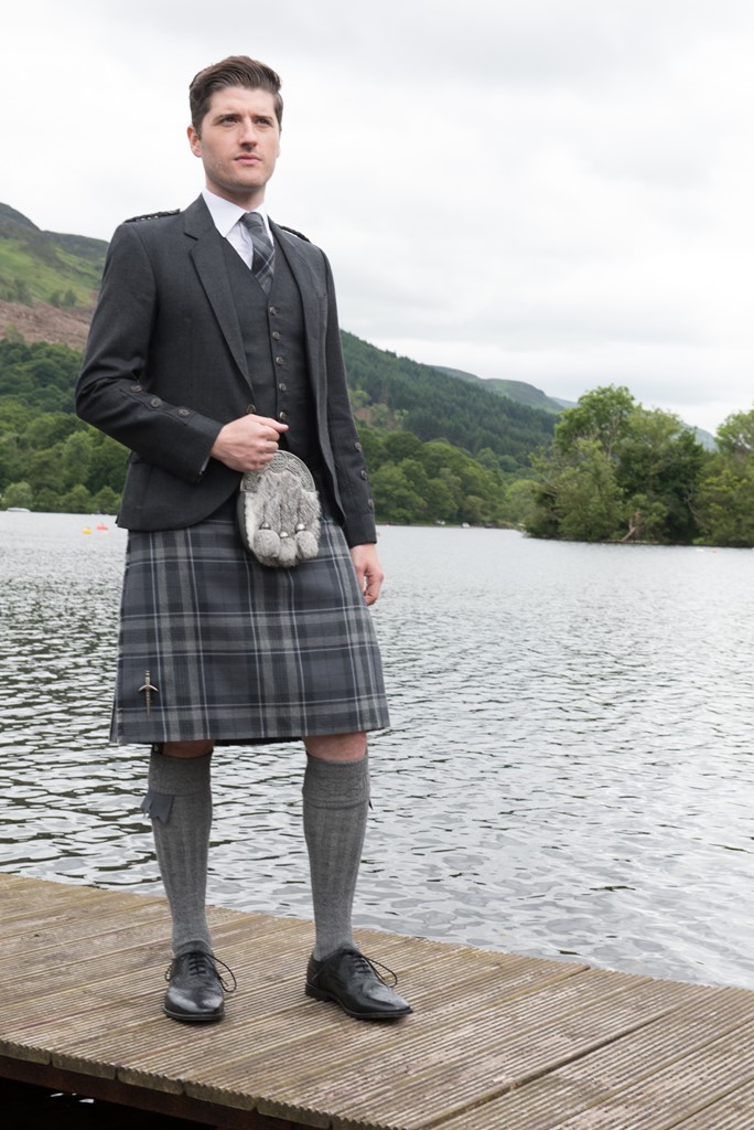 The exclusive Spirit of Loch Fyne tartan kilt outfit is available either to own as a Grooms bespoke made to measure outfit with matching accessories and also available to hire.